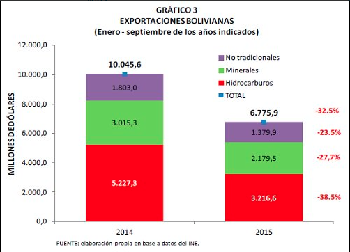 It is a historic event, the Bolivia dependence on prices of raw materials, today oil as it determines the selling price of natural gas, the main export product that contributes to 49 percent of the total. One of the main disadvantages of this dependence is that no one has any control over the price of raw materials and the Bolivian economy is exposed to positive and negative shocks. This newsletter aims to briefly review the available information reflecting the first effects of falling oil prices on the economy.