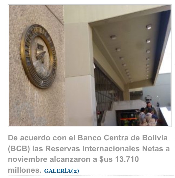 Net international reserves remain on a downward trend, according to a report of the Central Bank of Bolivia (BCB) which reveals that on November 20, it has been reached $13,710 million dollars, to October was in $13.967 million dollars, still it differs $257 million.