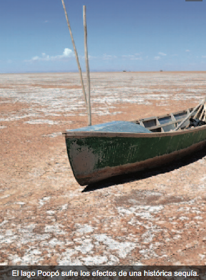 Climate change, the diversion of rivers, mining, among other factors have made the Poopó into a desert. The flora and fauna have disappeared with consequent environmental risk.
