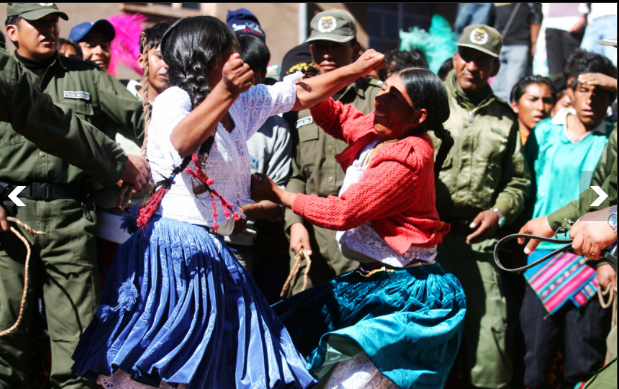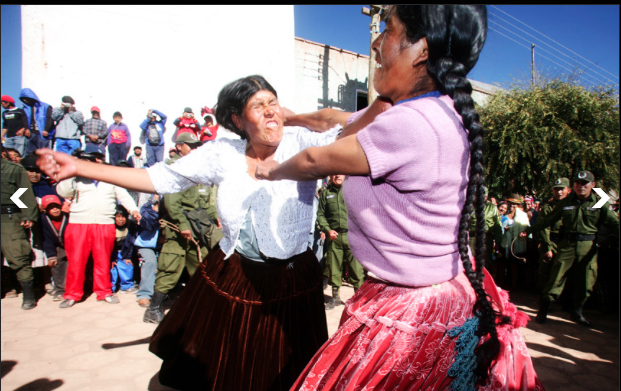 Bolivian men and women in violent harvest festival punch up, in pictures