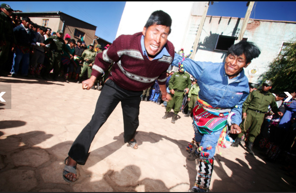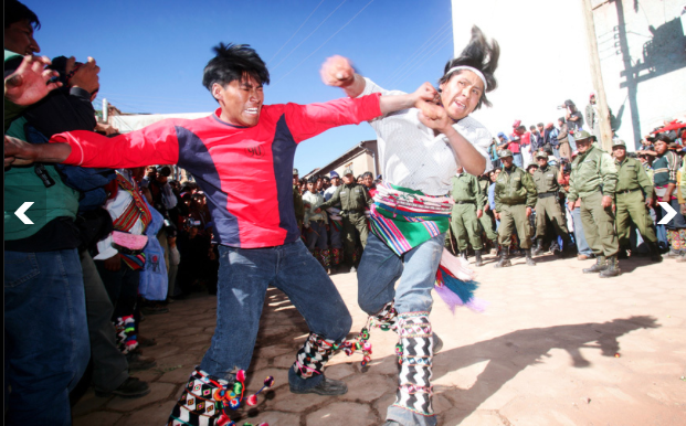 The fighting takes place in Macha in the Andes and is considered a sacred rite of the Quechua Indians.