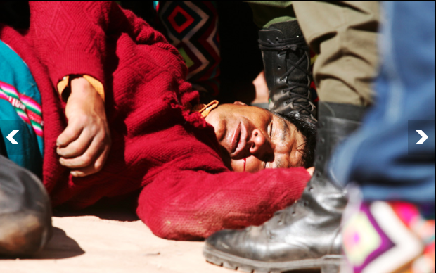 Thousands of villagers high up in the Bolivian Andes have taken part in a street fight with the aim of ‘spilling as much blood as possible’. Men and women dressed in colourful clothes take part in the violent ritual – known locally as The Machu Tinku – in order to please the local Goddess Pachamama so she will allow a fruitful harvest.