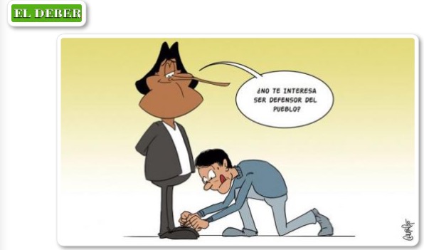 To stress more the above, this cartoon from El Deber shows what he feels should get as the new Ombudsman: