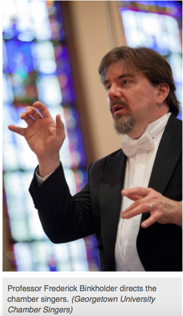 Professor Frederick Binkholder directs the Georgetown University Chamber Singers. He says music proved to be a useful tool in the missionaries’ attempts to convert the locals.