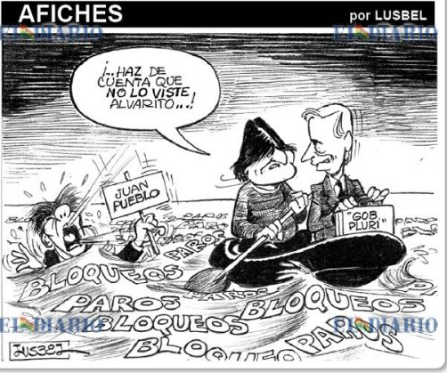 While John Doe is claiming for help as he is drowning is a sea of blockades, and strikes… the president tells the vp: “just pretend you didn’t see him, little Alvaro…!” while the latter holds a briefcase that is labelled as pluri-government, a fallacy that this demagogue and ochlocrat government invented to waste over $150 billion dollars in the last 10 years.