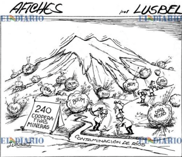 This cartoon from El Diario, shows our lousy and pitiful reality under this cocalero government that bragged about environmental protection!
