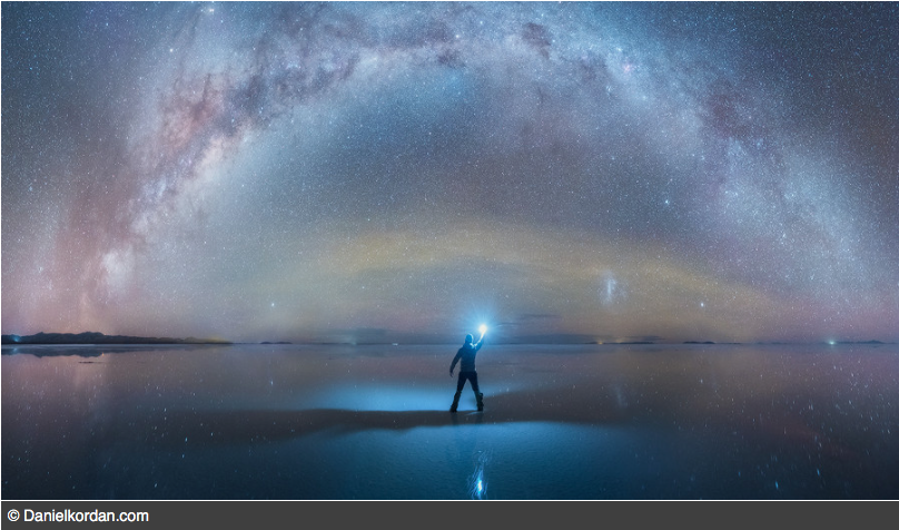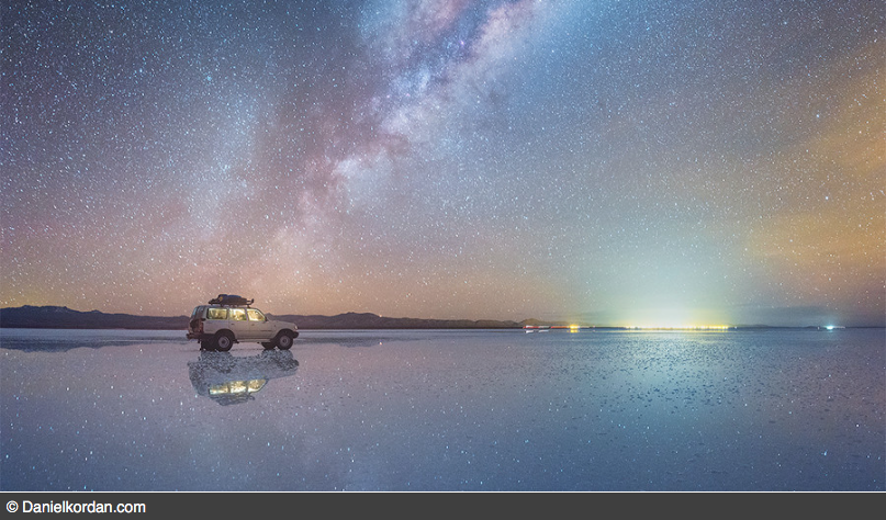 Russian photographer Daniel Kordan experienced “space on Earth” while capturing these stunningly ethereal images of the Milky Way surrounding him on the world’s largest salt flats in South America.