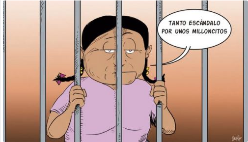 These cartoons displayed on Bolivian newspapers on 08/05/2016 expose Nemesia Achacollo, who has finally been brought to justice!