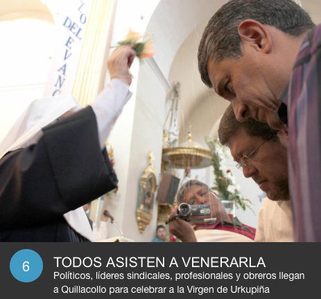 6 All attend to venerate her: Politicians, union leaders, professionals and workers go to Quillacollo to celebrate the Virgin of Urkupiña.