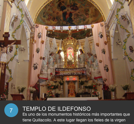 7 Temple of Ildefonso: Is one of the historic monuments more important that Quillacollo has. To this site, arrive the virgin’s devouts.
