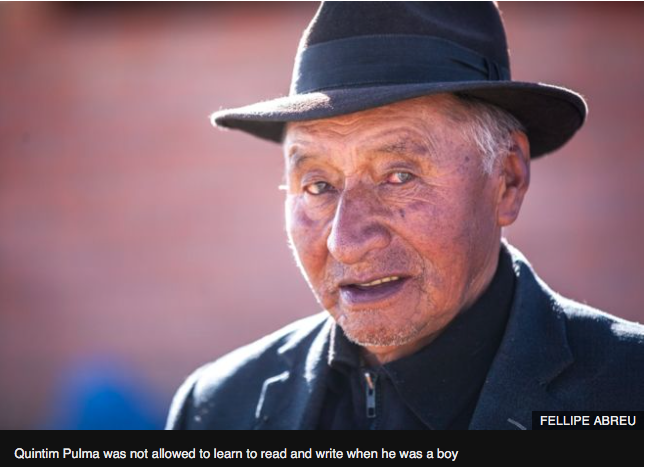 “Reading and writing were forbidden,” says Quintim Pulma, 83.