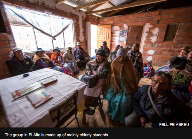 Mr Pulma is one of 39 elderly students in a literacy group in El Alto, Bolivia’s second largest city.
