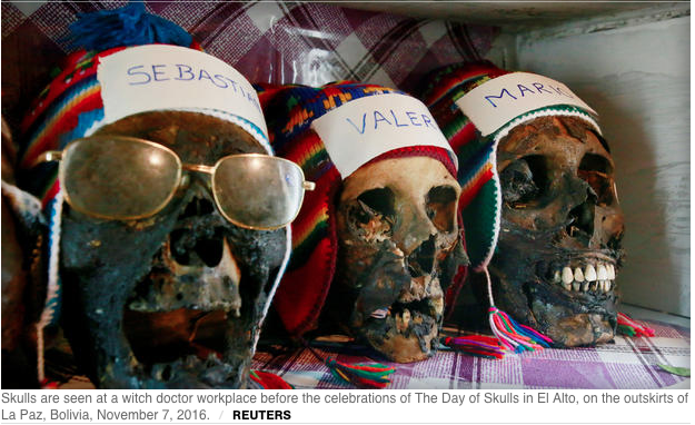 Witch doctors pay honor to their skulls before the celebrations of The Day of Skulls in El Alto, on the outskirts of La Paz, Bolivia, November 7, 2016.