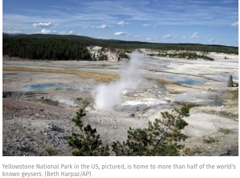 Geysers are present near volcanos when magma heats rocks and water underground starts to boil.