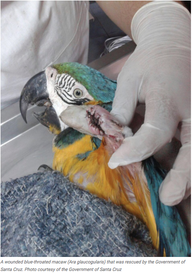 While cheaper species are sold in the domestic market, blue-throated and red-fronted macaws are the most threatened and high-value birds. They are often sold internationally via intermediaries. The red-and-green macaw is one of the species most requested by households in Santa Cruz due to its great beauty and ability to mimic the human voice.