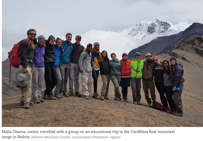 The Bolivian guides were convinced it was the blonde. It had to be the blonde. American Embassy officials in November had told three brothers who led guided hikes across Bolivia’s majestic Cordillera Real mountain range that they would soon be hosting an important American dignitary. When a group of teenagers and a small band of American bodyguards showed up on Nov. 24, it wasn’t apparent to the guides that it was the president’s eldest daughter, Malia Obama, and not a blond companion, who warranted the extraordinary security measures.