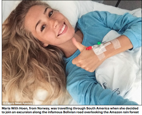 Maria With Hoen, from Norway, was travelling through South America when she decided to join an excursion along the infamous Bolivian road overlooking the Amazon rain forest.