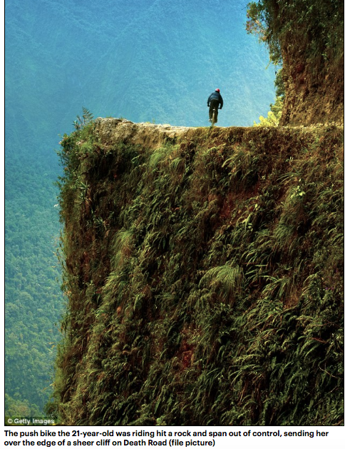 - The 21-year-old’s push bike hit a rock sending her over the edge of a 300ft cliff