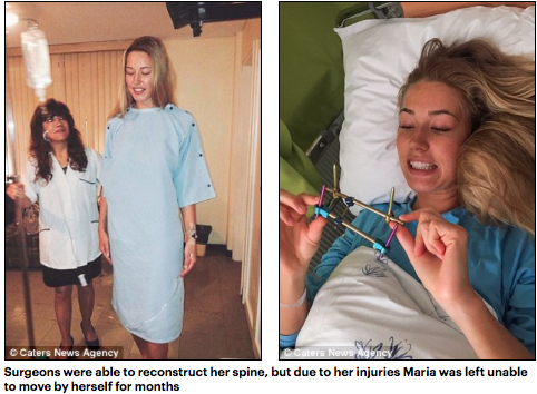 Surgeons were able to reconstruct her spine, but due to her injuries Maria was left unable to move by herself for months.