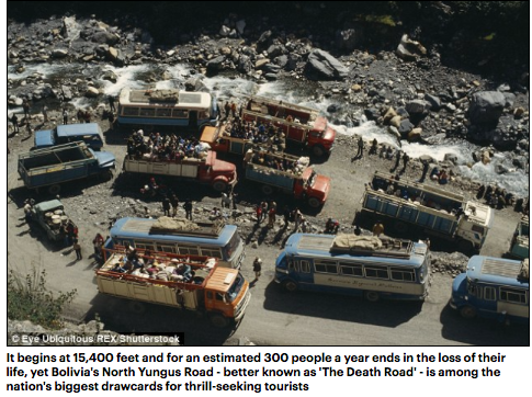 She added: ‘Due to a landslide blocking the main road in the area, there were cars allowed on Death Road that day.