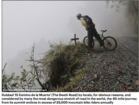 Dubbed ‘El Camino de la Muerte’ by locals, and considered by many the most dangerous stretch of road in the world, the 40-mile journey from its summit entices in excess of 25,000 mountain bike riders annually.