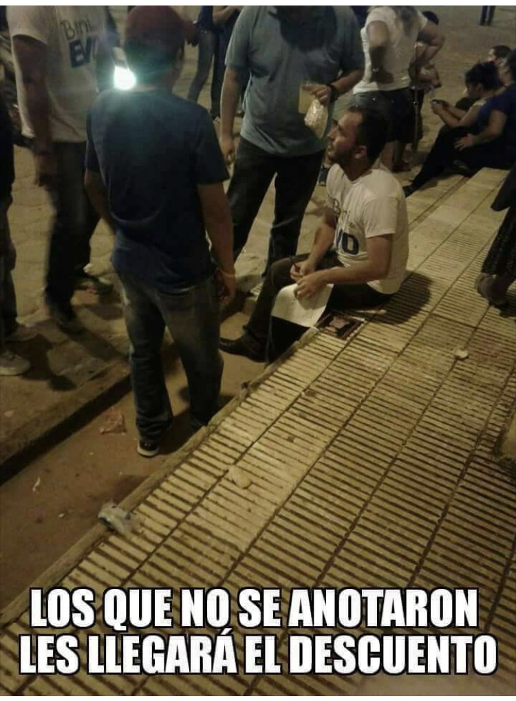 [Here I attach a photo of a memo from Customs, government office in Santa Cruz, instructing to attend, mandatory, to that reunion. Stating that during the gathering, assistance will be recorded as well as photos will be taken, at 19:00 and 22:00 … so, there you go, the real nature of this corrupt government!]