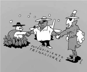 Bolivia’s interior minister said emissaries of Brazilian and Colombian drug trafficking groups are operating within the Andean nation, but the scope of foreign participation in the country’s drug trade could be greater than the minister admits. [cartoon is from El Dia, January 25, 2012 … and still holds …]