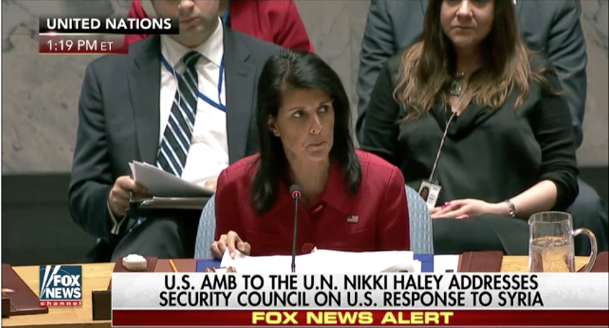 U.S. Ambassador to the U.N. Nikki Haley forced Bolivia to “defend the atrocities of the Syrian regime” in “full public view” on Friday, after the country’s ambassador requested a closed session to discuss President Trump’s strikes in Syria.