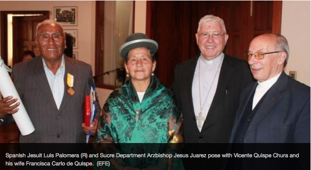 The head of the Bolivian Episcopal Conference (CEB), Ricardo Centellas, told media outlets that Quispe was very surprised when he learned that the pontiff had awarded him the “Pro Ecclesia et Pontifice” decoration for his work.
