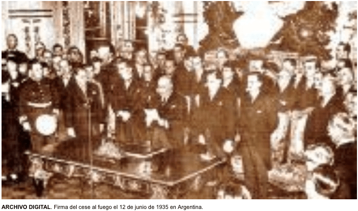 The jubilation not only reached the two nations that for three years had faced on the battlefield, leaving thousands of people dead, on both sides, also reached mediating countries, like Chile and Peru, that for example, declared that June 14, 1935 a holiday in their respective territories.