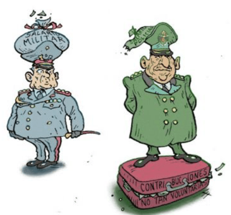 This cartoon from El Dia (07/05/2017), describes the sentiments of those who have fallen to his $$$ “reward” or else … will do whatever there is in their power to continue to support this petty government. Military have been receiving bonuses and thus thier military salary is a big chunk to secure loyalty.