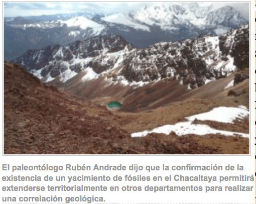 The reduction of the ice mass exposed a fossil deposit of prehistoric marine fauna from the Silurian period some 420 to 400 million years ago. Bolivian paleontologist Rubén Andrade of the National Museum of Natural History confirmed the existence of the paleontological deposit that was already made known in the early 1920s in a publication of the time.