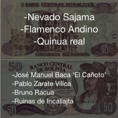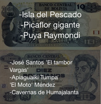 These figures will replace the images of Franz Tamayo and the pre-Inca ruins of the Tihuanacota empire on the shores of Lake Titicaca.