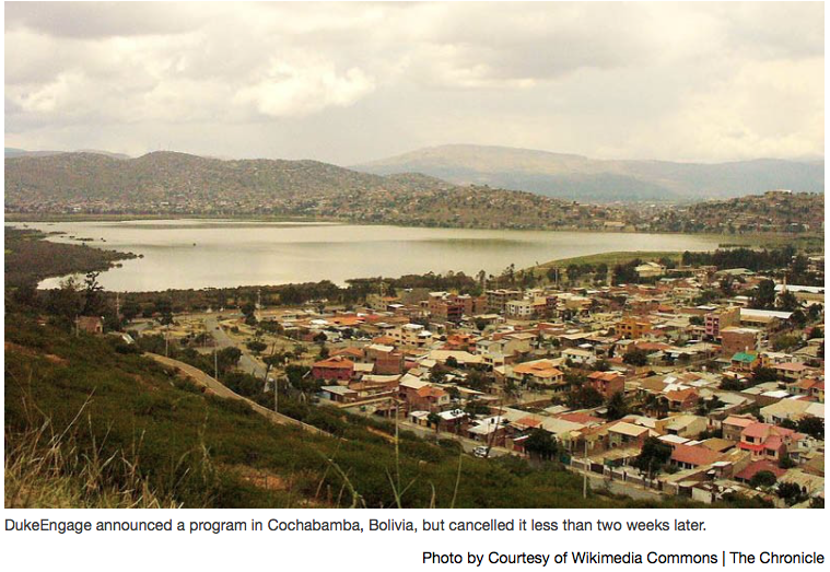 He noted that confusion among students about the cancellation was minimal. The DukeEngage office wrote to those who had already begun an application for the Bolivia project, informing them of the change. However, another press release was not sent out.