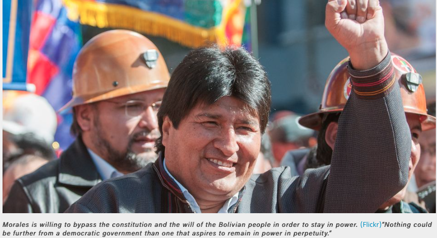 The Vice President of Bolivia’s Movement to Socialism Party, Gerardo Garcia, said that President Evo Morales will run for reelection, “no matter what” in 2019. That means Morales is willing to bypass the constitution and the will of the Bolivian people in order to stay in power.