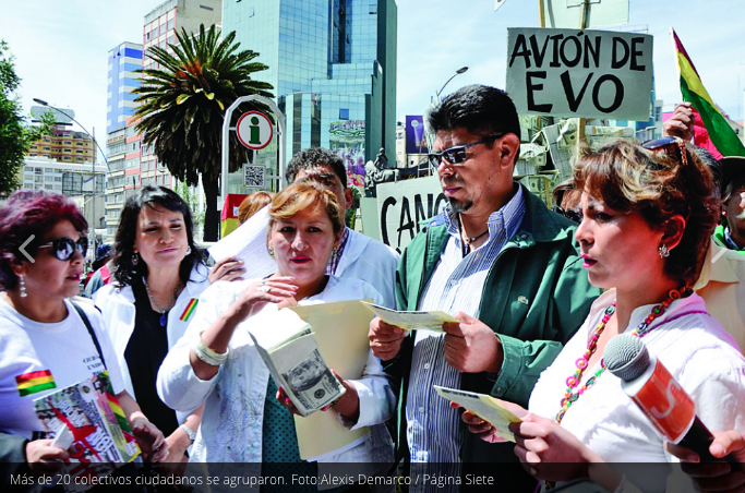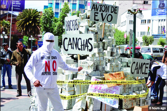 Activists of the Citizen Movement yesterday armed a “mountain of corruption”, in which they exhibited banknotes and signs of scandals sounded and controversial issues that were generated during the Government of Evo Morales.