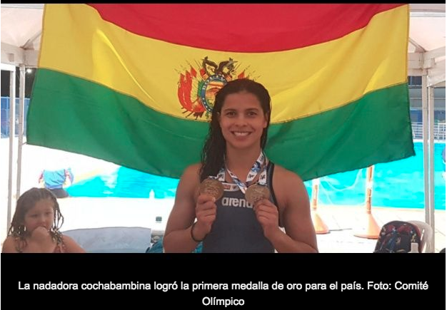 The Bolivian swimmer achieved the first gold medal for the country after winning the 50 meter freestyle event at the Bolivarian Games in Santa Marta (Colombia).