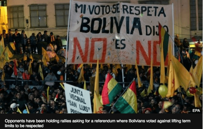 February 2016: Bolivians vote in a referendum against lifting presidential term limits