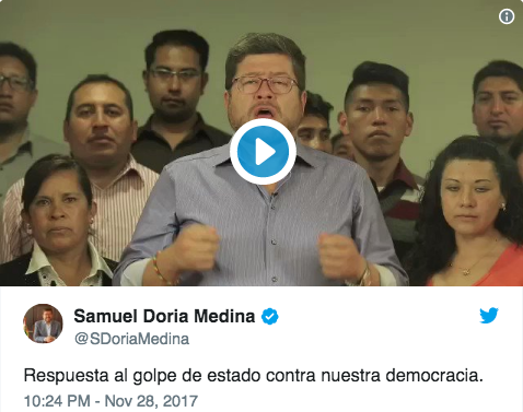 Conservative opposition leader Samuel Doria Medina published a video message calling the court’s decision “a coup d’etat”. [use this link to watch the video]