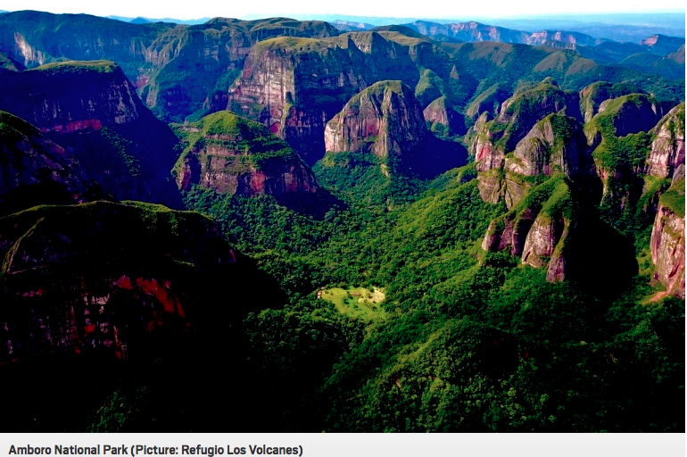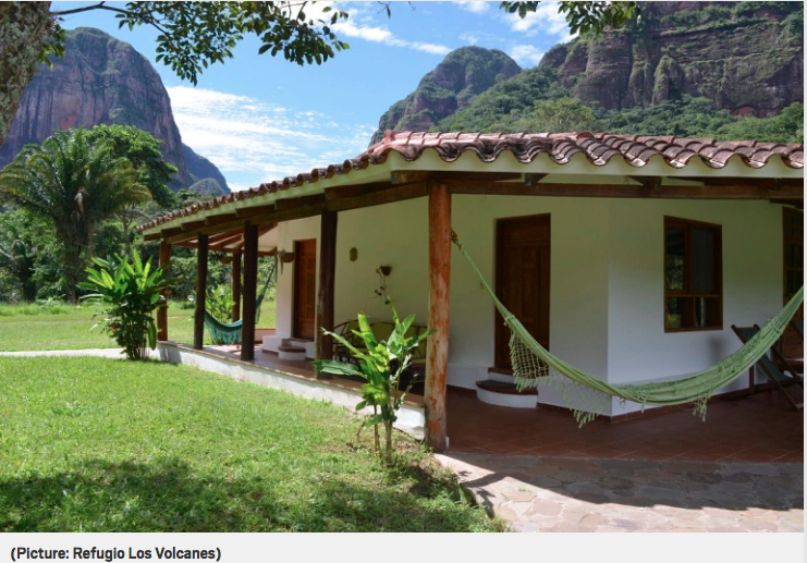 This lodge, nestled in a clearing in Amboro National Park, offers an oasis of calm surrounded by jungle. With only six rooms (and four more planned), there is a sense of bespoke intimacy to the accommodation and services. There are three pristine waterfalls guests can swim in minutes from the lodge. Rooms at Refugio Los Volcanes start at £63 for single occupancy and £74 for double occupancy. Room prices include three meals a day, and access to local ‘pathfinders’ who help guide you on the surrounding trails.