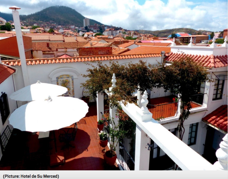 This boutique hotel sits a stone’s throw from Sucre’s main square. It’s a traditional house that’s been converted into a small collection of charming rooms, all sitting off a flower-filled courtyard. The hotel has several roof terraces, all with individual seating areas offering views over the city to the mountains beyond. Doubles at Hotel de Su Merced start at £59 per night, and suites at £70 per night.