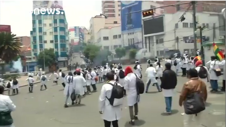 Clashes erupt in La Paz as protesting doctors, medical professionals and medical students continue a month long strike that has all but shut down local hospitals, with the exception of emergency rooms.