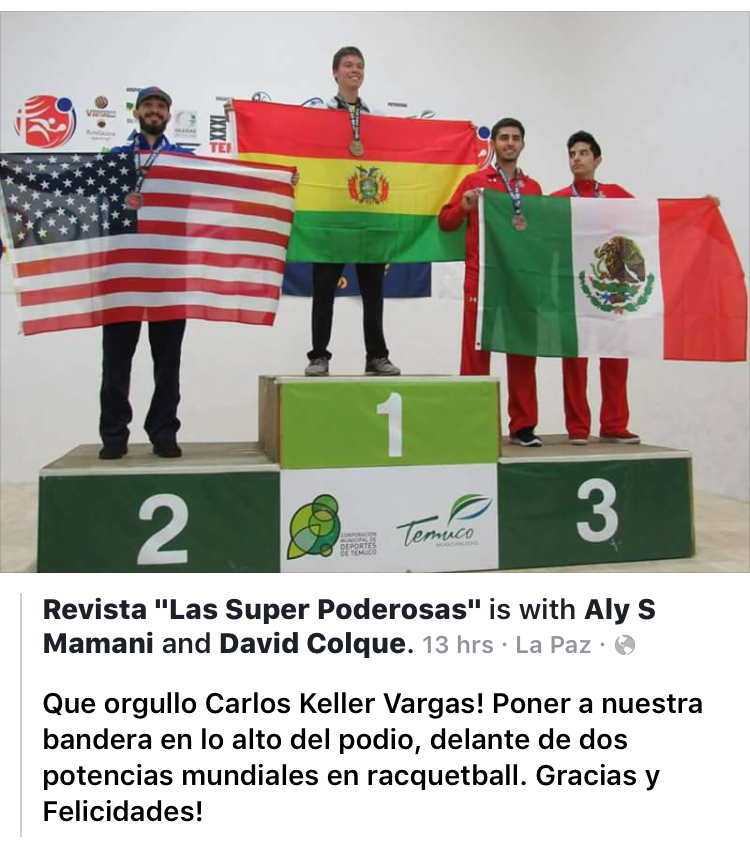 Nothing better than great news to start the week, even more so when coming from Chile! Kudos to these wonderful Bolivian racquetball players! The above is the happy opinion of Bolivian Thoughts, so I welcome them to The Hall Of Bolivian Fame!