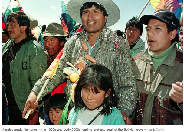 Morales gained national prominence in the early 2000s when he led numerous mass marches and strikes to protest government efforts to privatize utilities and tax public employees’ salaries.