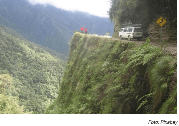 The famous death road is in Bolivia, better known as the road to the Yungas, a path of approximately 80 kilometers that unites the city of La Paz and the region of the Yungas to the northeast.