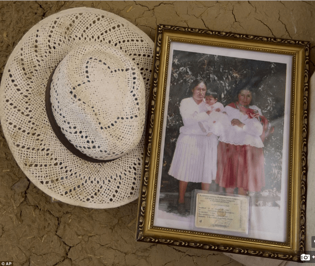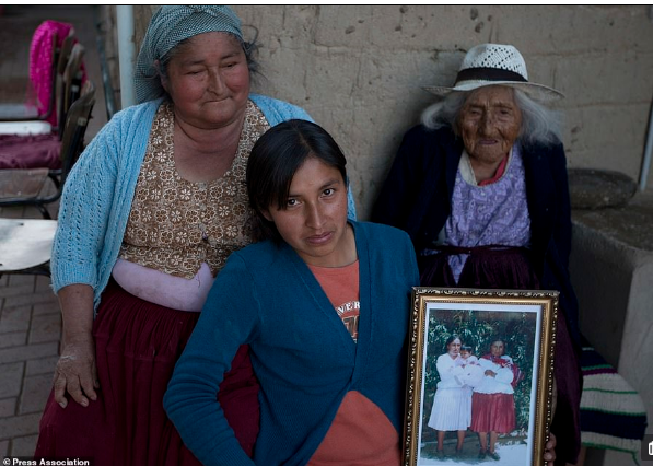 A few years later: Rosa Lucas, now an adult, holds the picture as she sits with her mother Agustina Berna and her great-great-aunt at their home in Sacaba