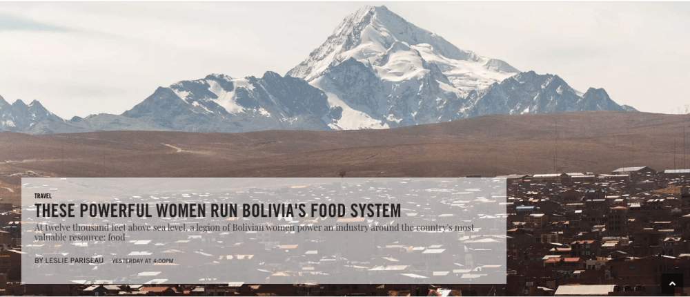 In Bolivia, traditional gender conditioning has long intertwined sustenance together with the domestic and the feminine. But while women’s roles as farmers, sellers, and cooks award them a remarkable level of visibility and economic power, throughout the country they are still struggling for social equality and basic personal safety, especially among indigenous populations. As recently as a decade or two ago, cholitas were barred from public transport and could be refused entry to private businesses, such as hotels and restaurants. For many years, Bolivia has struggled with Latin America’s highest rates of femicide and violence, with more than half of women experiencing domestic abuse. And yet women of all socioeconomic backgrounds, from farmers to restaurant owners, continue to hold the keys to the country’s food system—increasingly wielding this knowledge and power for greater independence and equality. Among groups like Eco Tambo (the country’s first independently run organic farmers market) and MIGA (a food sustainability organization that holds women’s symposiums), and individual women forging businesses, the engine of Bolivia’s food economy is fueled by females.