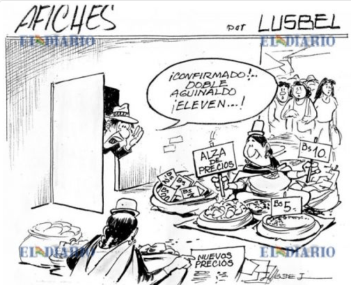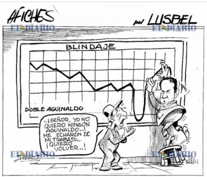 Three cartoons from El Diario also illustrate this demagogue, manipulated and not a sustainable bonus. This one is from 10/16/2018: