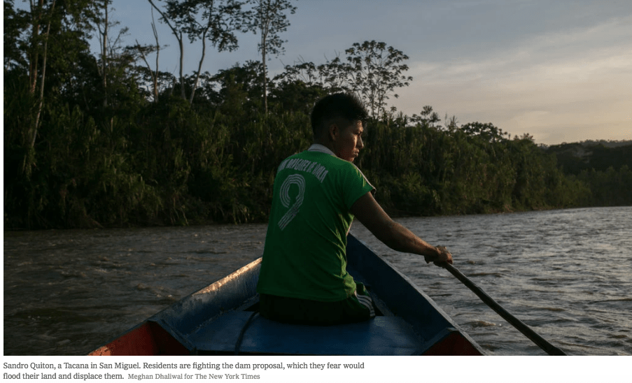 The Tacanas had spent years fighting previous governments over the project, but they were taken aback when Mr. Morales began pushing for it. In June, the indigenous group sent a small armada of canoes upstream to block the river, in an effort to keep engineers from the site.