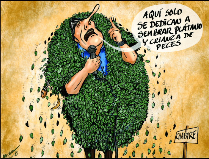 Understanding this behavior and his claims that in the Chapare, they only grow bananas and fish breeding … when ALL the world knows that over 90% of the coca crop goes to cocaine production. His big mouth shows how ridiculous his political speech has turned out to be. He claims exactly what USAID did years ago, with Alternative Development.